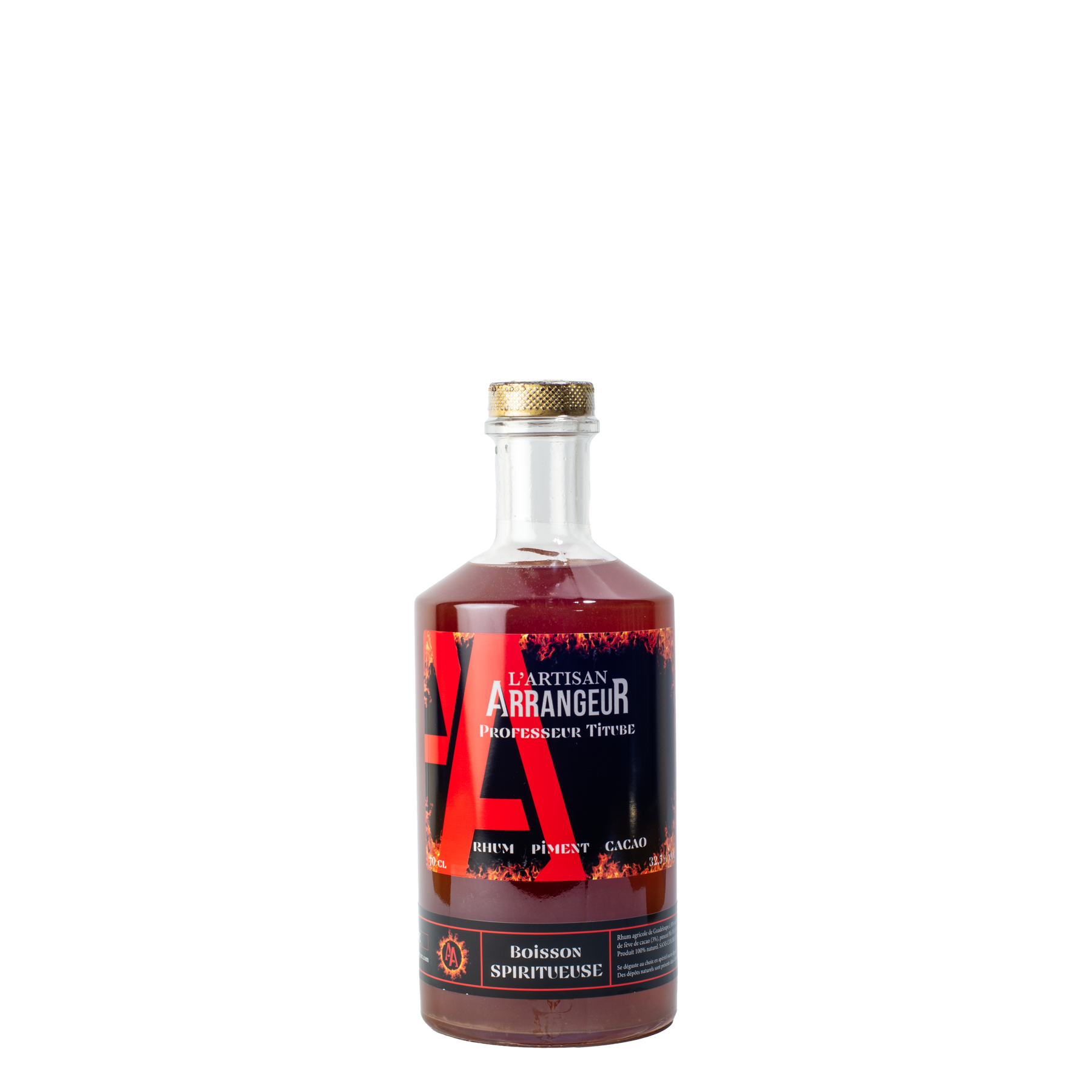Le Rhum Piment Cacao est une création audacieuse de L'Artisan Arrangeur, élaborée en collaboration avec le Professeur Titube. Ce rhum arrangé associe la puissance du piment Pili-Pili à la douceur du cacao, offrant une expérience gustative unique.